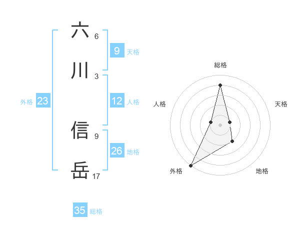 六川 信岳さんの総格は35画の4点!