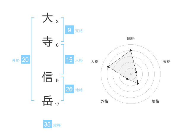 大寺 信岳さんの総格は35画の4点!