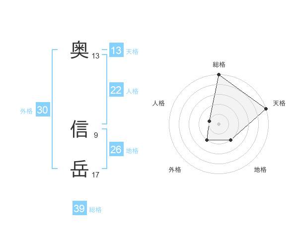 奥 信岳さんの総格は39画の5点!