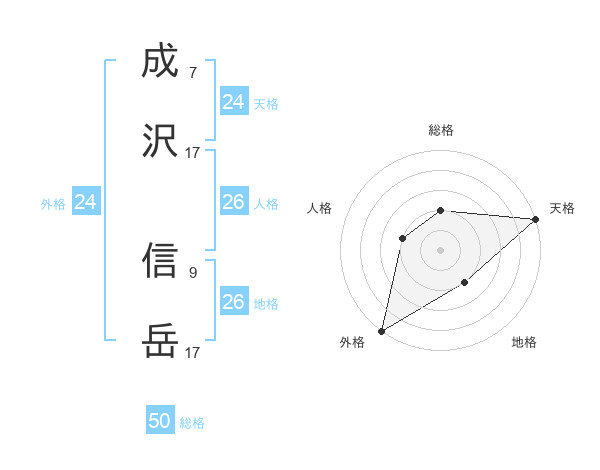 成沢 信岳さんを姓名の画数から五運を鑑定