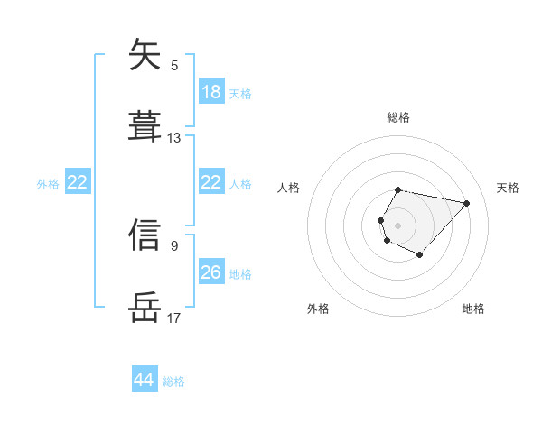 矢葺 信岳さんの外格は22画の1点!
