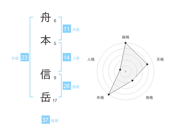 舟本 信岳さんを姓名の画数から五運を鑑定