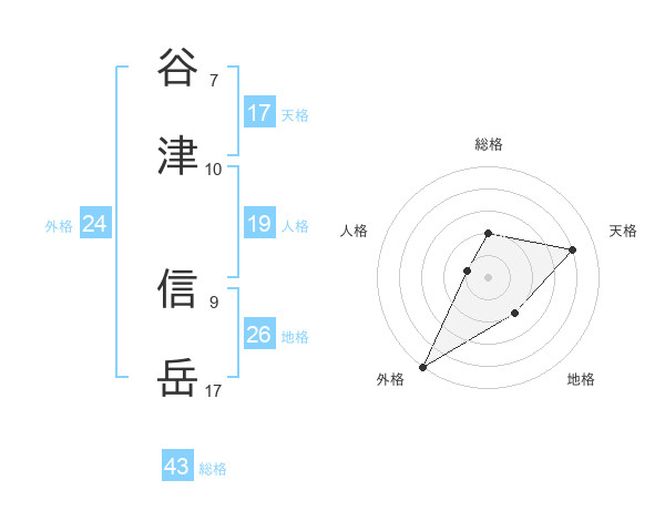 谷津 信岳さんを姓名の画数から五運を鑑定