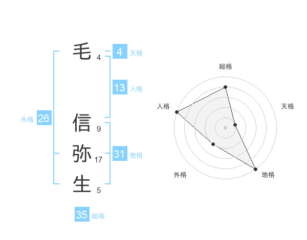 毛 信弥生さんを姓名の画数から五運を鑑定
