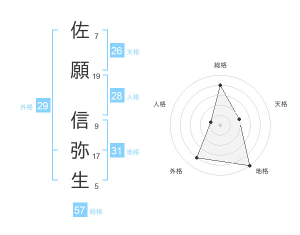 佐願 信弥生さんを姓名の画数から五運を鑑定