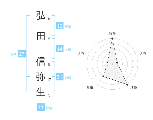 弘田 信弥生さんを姓名の画数から五運を鑑定
