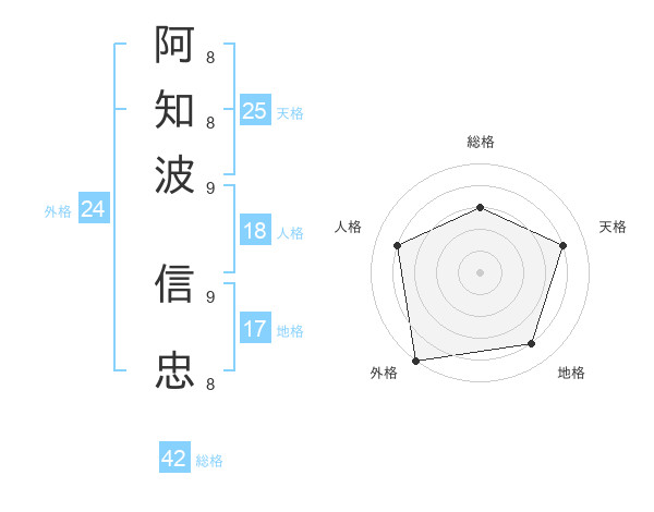 阿知波 信忠さんを姓名の画数から五運を鑑定