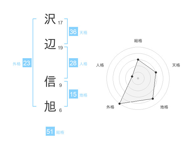 沢辺 信旭さんの総格は51画の3点!