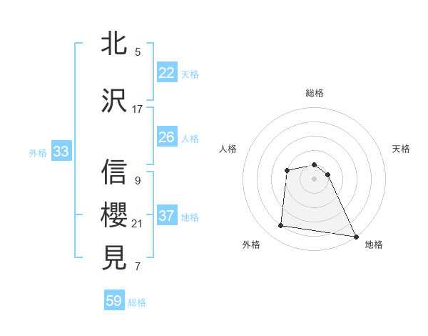 北沢 信櫻見さんの総格は59画の1点!