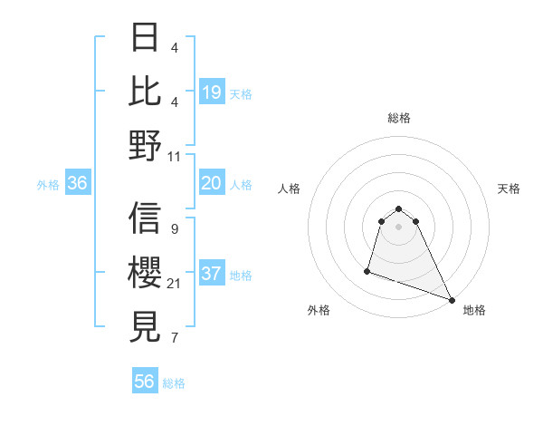日比野 信櫻見さんの総格は56画の1点!