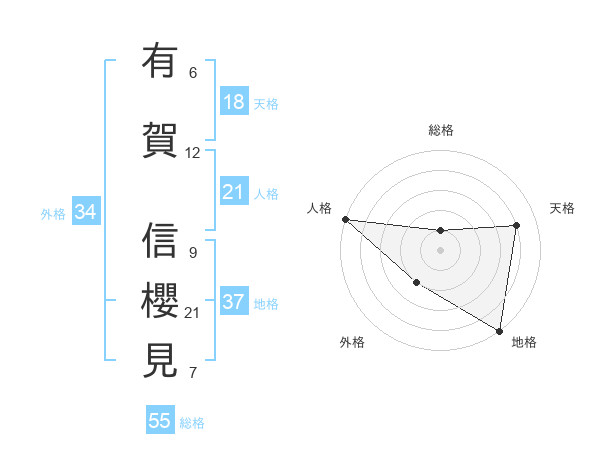 有賀 信櫻見さんの総格は55画の1点!