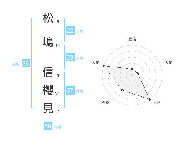 松嶋 信櫻見さんの地格は37画の5点!