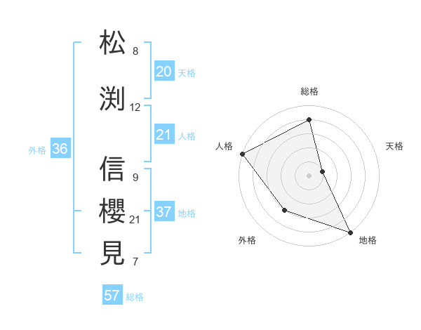松渕 信櫻見さんを姓名の画数から五運を鑑定