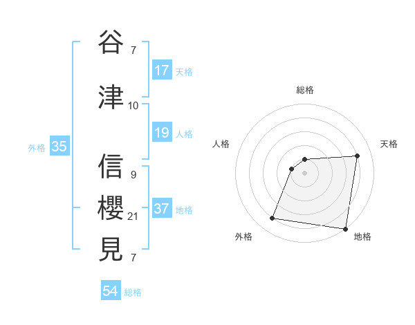 谷津 信櫻見さんを姓名の画数から五運を鑑定