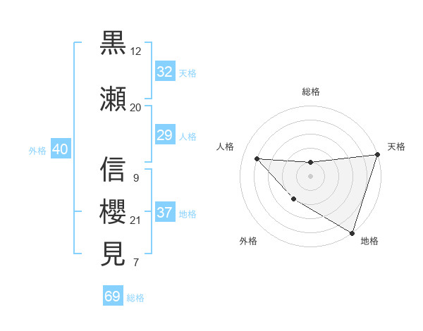 黒瀬 信櫻見さんを姓名の画数から五運を鑑定
