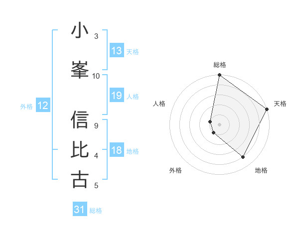 小峯 信比古さんを姓名の画数から五運を鑑定