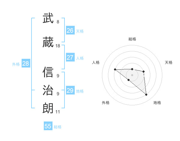 武蔵 信治朗さんを姓名の画数から五運を鑑定