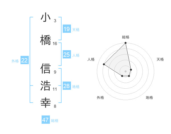 小橋 信浩幸さんを姓名の画数から五運を鑑定
