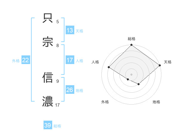 只宗 信濃さんを姓名の画数から五運を鑑定