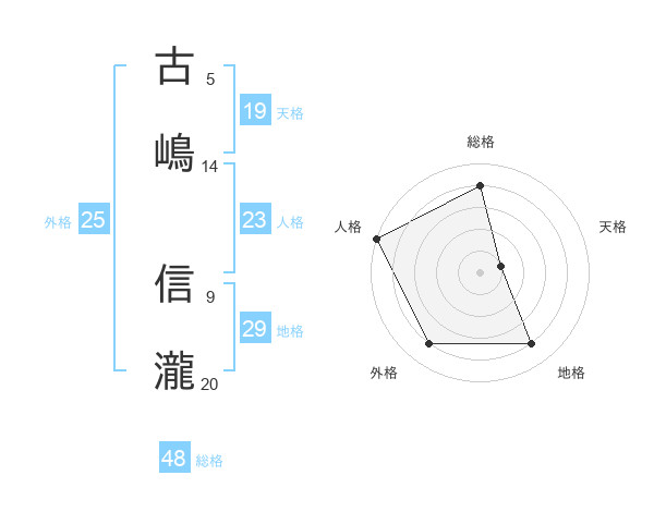 古嶋 信瀧さんを姓名の画数から五運を鑑定