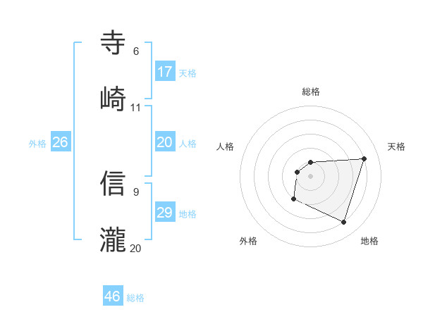 寺崎 信瀧さんの地格は29画の4点!