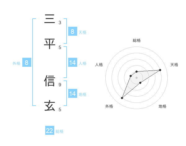 三平 信玄さんの総格は22画の1点!