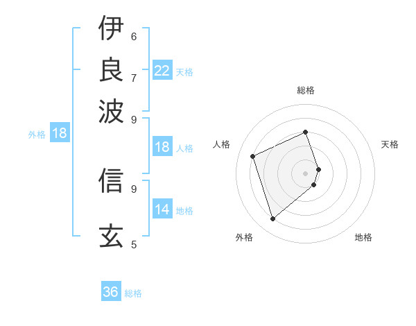 伊良波 信玄さんを姓名の画数から五運を鑑定