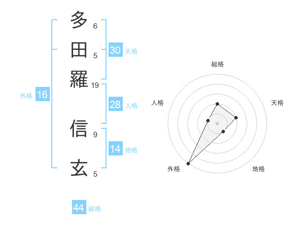 多田羅 信玄さんを姓名の画数から五運を鑑定