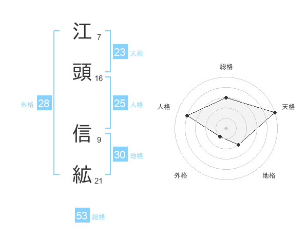 江頭 信絋さんを姓名の画数から五運を鑑定