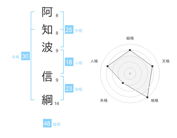阿知波 信綱さんの天格は25画の4点!