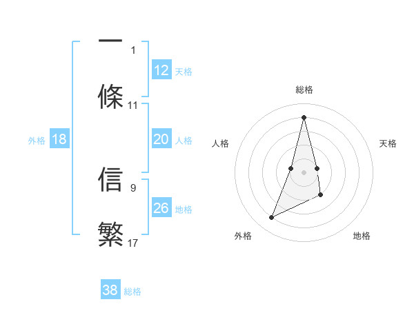 一條 信繁さんの総格は38画の4点!