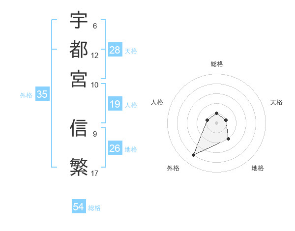 宇都宮 信繁さんの外格は35画の4点!