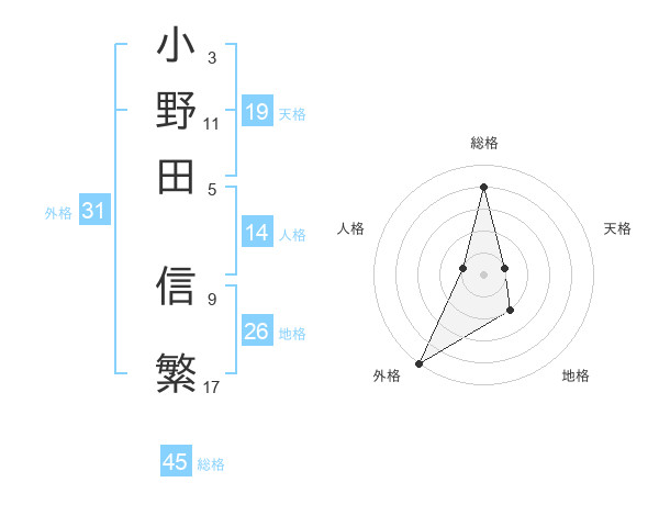 小野田 信繁さんの総格は45画の4点!