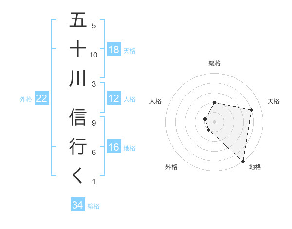 五十川 信行くさんを姓名の画数から五運を鑑定