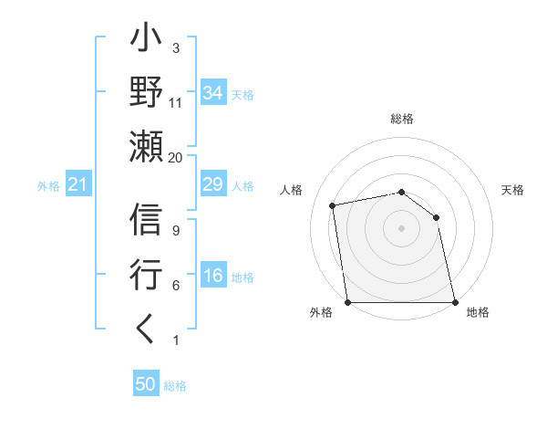 小野瀬 信行くさんの総格は50画の2点