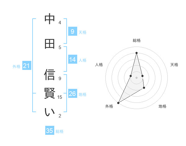 中田 信賢いさんを姓名の画数から五運を鑑定