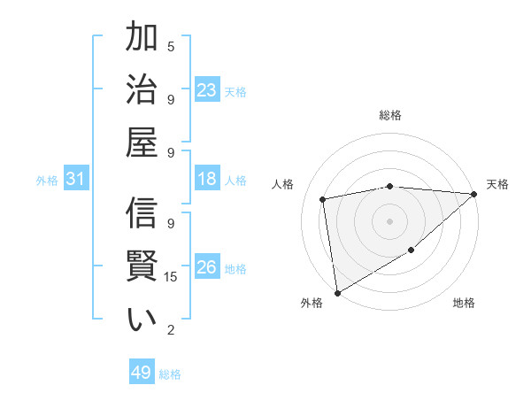 加治屋 信賢いさんの天格は23画の5点