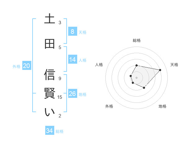 土田 信賢いさんを姓名の画数から五運を鑑定
