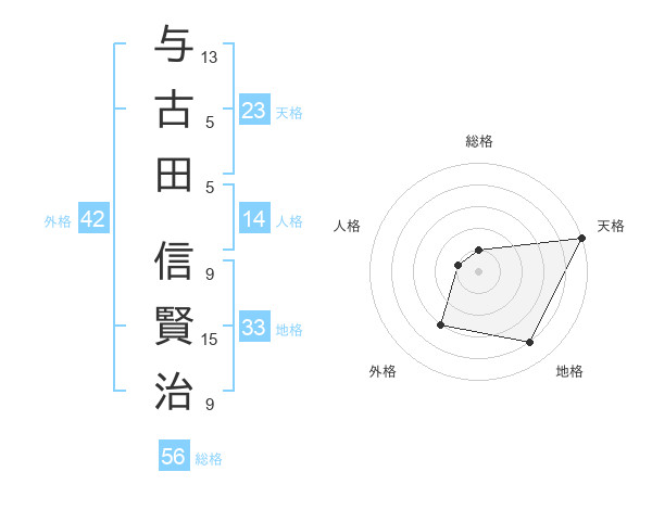与古田 信賢治さんを姓名の画数から五運を鑑定