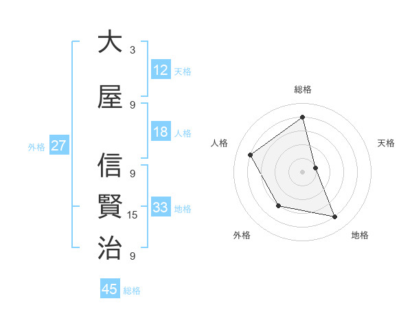 大屋 信賢治さんを姓名の画数から五運を鑑定