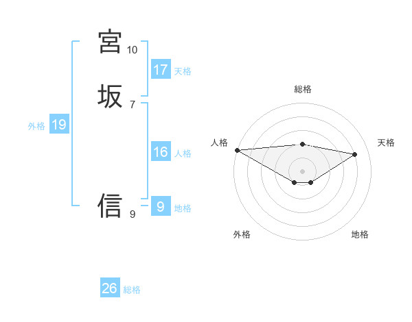 宮坂 信さんの天格は17画の4点!