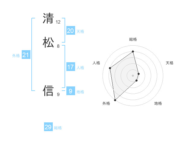 清松 信さんの総格は29画の4点!