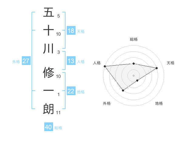 五十川 修一朗さんを姓名の画数から五運を鑑定