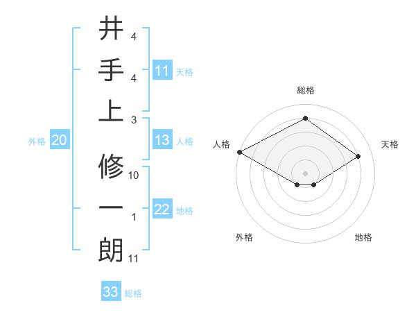 井手上 修一朗さんを姓名の画数から五運を鑑定