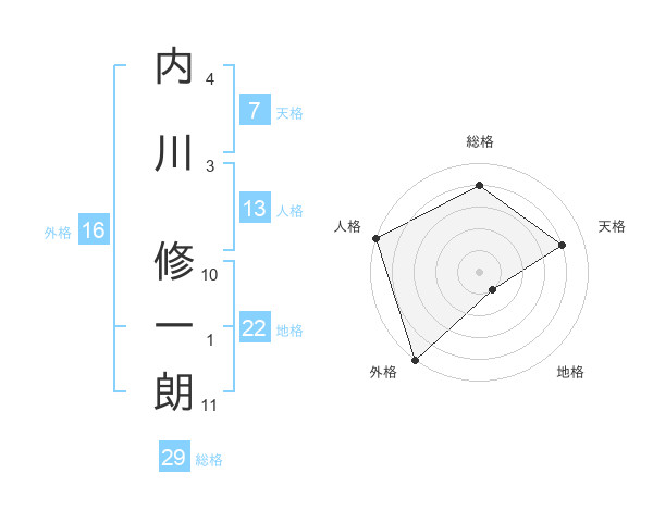 内川 修一朗さんを姓名の画数から五運を鑑定