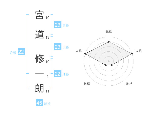 宮道 修一朗さんの総格は45画の4点