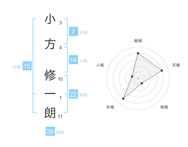小方 修一朗さんを姓名の画数から五運を鑑定