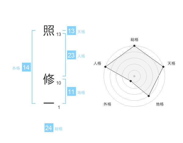 照 修一さんの天格は13画の5点!