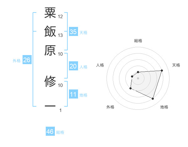 粟飯原 修一さんを姓名の画数から五運を鑑定