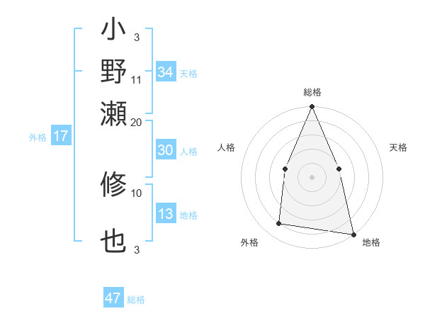 小野瀬 修也さんを姓名の画数から五運を鑑定